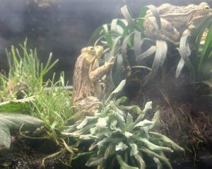 そんなトノサマガエルですが、ある日水槽を見てみると1カ所に集合して1点を見つめている姿を見かけました。