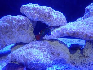 今回は、「青の世界展」で展示している生き物をご紹介するのではなく、同じ水槽内にいるとある傍役をご紹介したいと思います。