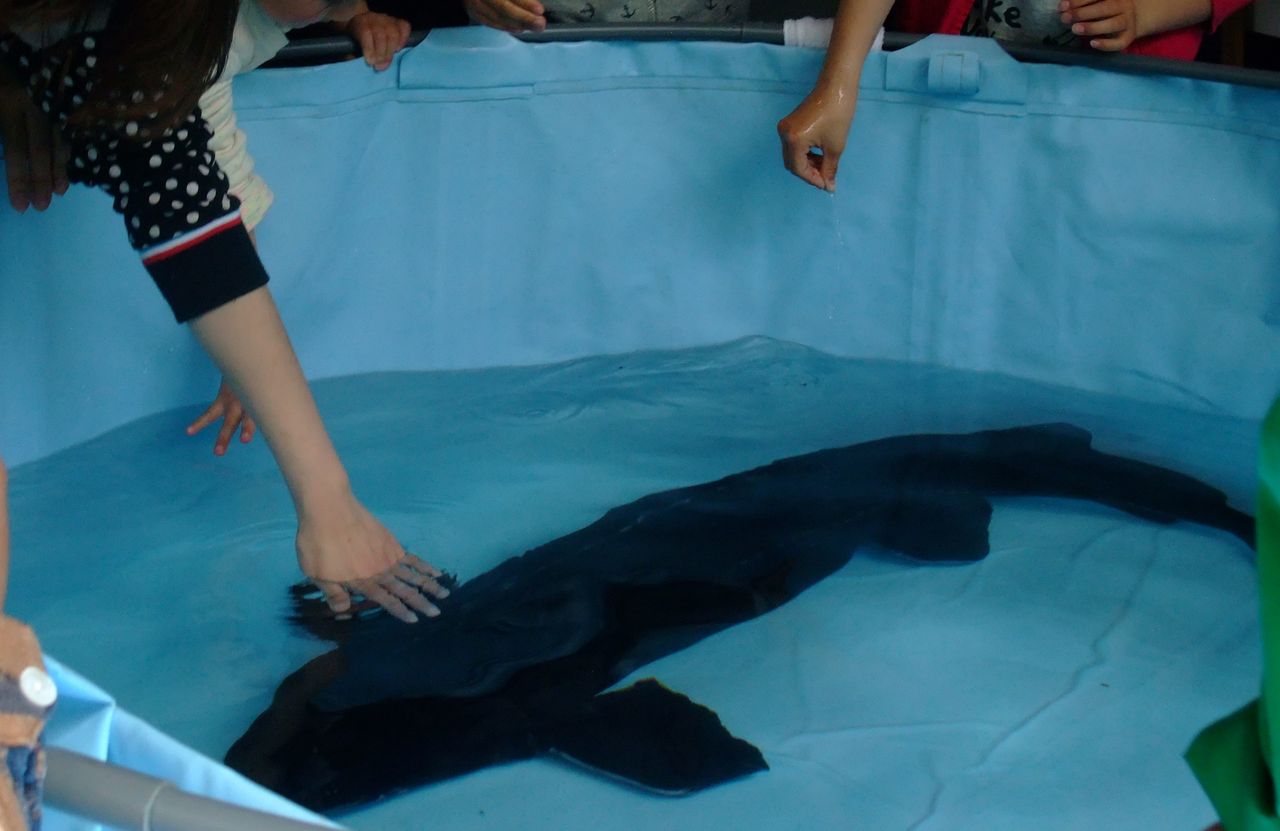 館内に設置した特設プールに連れてきてふれあいを行います。
